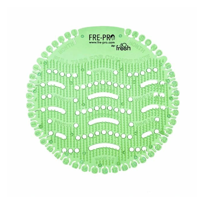 Vonné gélové sitko do pisoára Wave 2 je súčasťou radu originálnych produktov FRE-PRO. Revolučný transparentný a flexibilný dizajn, umožňujúci náhľad do odpadových ciest, redukuje rozstrekovanie moču, udržuje pisoár v čistote a redukuje čas potrebný na očistu až o polovicu.