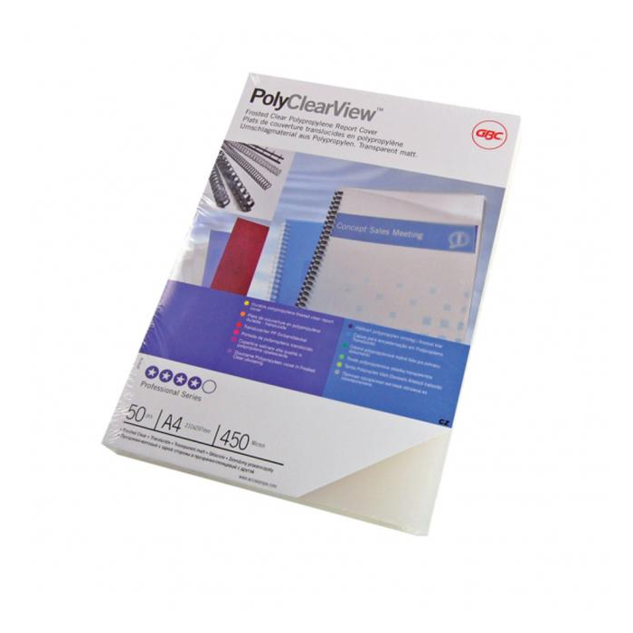 Viazanie dokumentov ešte nikdy nebolo jednoduchšie. Predné obálky pre tepelnú väzbu PolyClearView™ sú robustné a priehľadné a sú určené pre zvýraznenie a ochranu titulných strán. Recyklovateľné obálky sú ohľaduplné k životnému prostrediu než štandardné priehľadné obálky z PVC. Farba matná priehľadná. Hrúbka 450 mikrónov. Formát A4. Balenie 50 kusov.