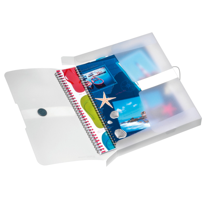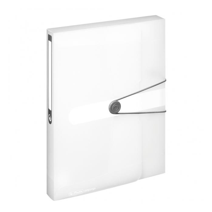 Box z polypropylénu Easy Orga na dokumenty formátu A4. Kapacita 400 listov, šírka chrbta 4 cm. Zatváranie sivou gumičkou o sivý plastový krúžok, nalepený chrbtový štítok na popis obsahu. Väčšie balenie 10 ks. Farba číra.