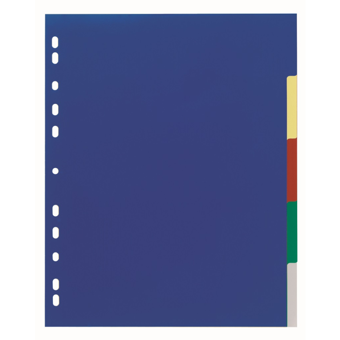 Farebný rozraďovač s 5 oddielmi vyrobený zo zosilneného plastu. Formát A4 maxi, eurodierovanie, popisovateľný papierový titulný list na ľahkú orientáciu v dokumentoch. Výsledný dokument pôsobí upravene a reprezenta­tívne. Väčšie balenie 20 sád.