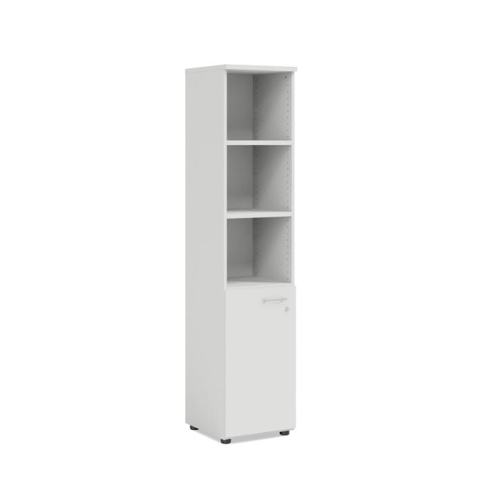 Policová skriňa BASIC, 4 police, kombinovaná, ľavé dvere so zámkom, 40x40x182,1cm, biela