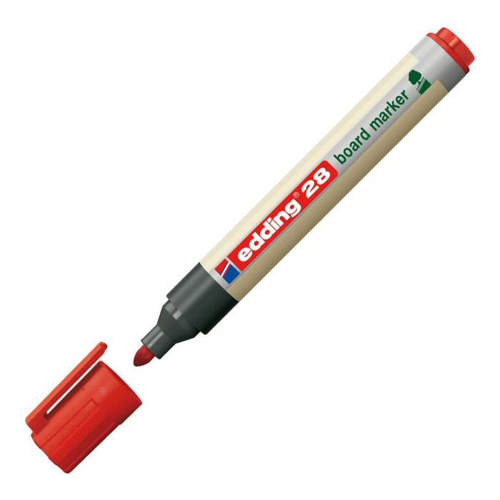 Popisovač na biele tabule, za sucha stierateľný prakticky zo všetkých neporóznych povrchov, ako je keramická úprava, melamín i sklo. Minimálne 80 % plastovej časti je vyrobených z recyklovaného materiálu. Okrúhly hrot, šírka stopy 1,5 - 3 mm. Rýchloschnúci, vodeodolný, slabo zapáchajúci atrament intenzívnej farby. Krátky čas vydrží neuzavretý bez vyschnutia. Väčšie balenie 10 ks.