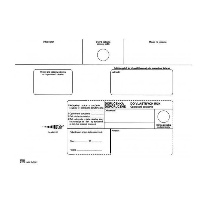 Poštové obálky C5 doručenka do VR OD, Doposielať, olizové 100 ks