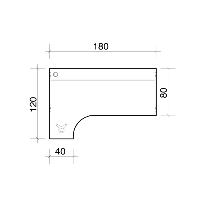 Pracovný stôl Flex, ergo, pravý, 180x75,5x120 (40x80) cm, agát/kov