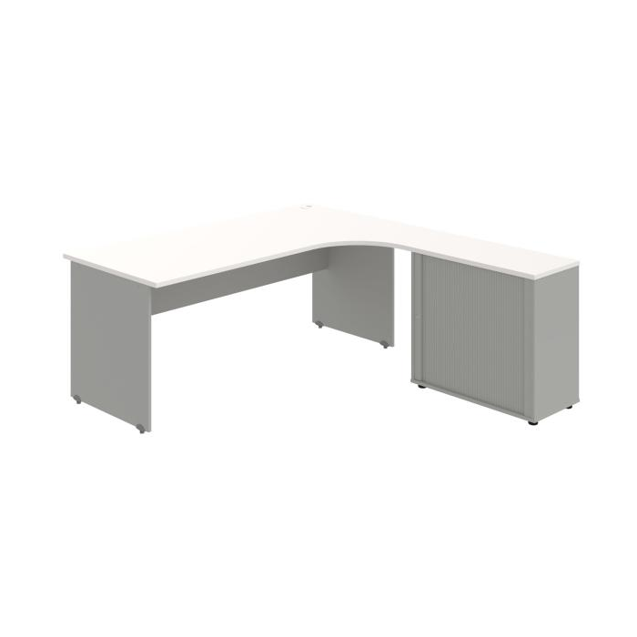 Pracovný stôl Gate, ergo, ľavý, 180x75,5x200 cm, biela/sivá