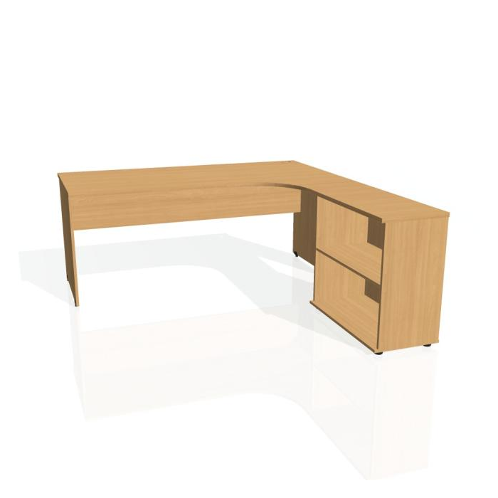 Pracovný stôl Gate, ergo, ľavý, 180x75,5x200 cm, buk/buk