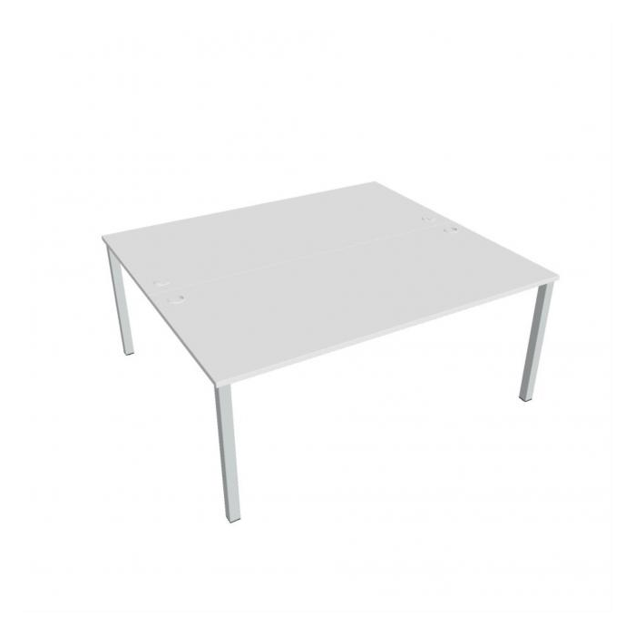 Zdvojený pracovný stôl rovný. Doska stola z kvalitného lamina. Pevná kovová konštrukcia podnožia zo štvorcových profilov 50 x 50 mm je tvorená kompaktnými pármi nôh, ktoré sú spojené priečnikmi. Výškovo nastaviteľná rektifikácia zaisťuje možnosť dorovnania prípadnej nerovnosti podlahy až o 1,5 cm. Stolová pracovná doska z LTD má hrúbku 25 mm a je zakončená 2mm hranou ABS, ktorá ju chráni pred poškodením. Samozrejmosťou sú káblové priechodky a systém pre zavesenie káblov pod stolovou doskou. Možnosť objednania bieleho či sivého prevedenia podnožia. Stolové doplnky, kontajnery a skrine vyberajte z ponuky kancelárskeho nábytku Hobis. Aby sa zásielka dostala v poriadku až do Vašej kancelárie, dodávame stoly demontované v niekoľkých samostatných a bezpečne zabalených škatuliach. Súčasťou každého balenia je tiež prehľadný návod. Na stoly UNI sa vzťahuje záruka 5 rokov. Farebnosť je ilustratívna.