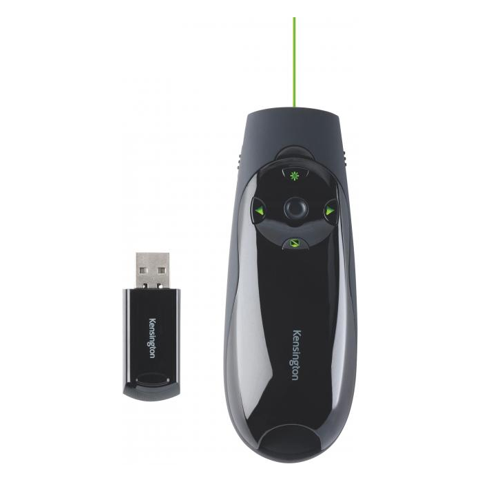 Prezentačné ukazovátko Kensington Presenter Expert™ predstavuje novú úroveň ovládania prezentácií. Je vybavené intuitívnym štvorsmerným joystickom a je možné ich používať ako myš s ovládaním pohybu hore/dole a doľava/doprava. Bezdrôtový prijímač pre pásmo 2,4 GHz. Ovládanie kurzora joystickom umožňuje používať ukazovátko ako počítačovú myš a posúvať kurzor hore/dole a doľava/doprava. Podsvietené ovládacie tlačidlá posúvajú snímky vpred/vzad, zatmievajú obraz a aktivujú lúč červeného lasera. Dosah bezdrôtového spojenia zväčšený na 45 metrov. Bezdrôtový prijímač USB je možné uložiť do ovládača, takže ho nestratíte. Inštalácia bezdrôtovej komunikácie v pásme 2,4 GHz metódou Plug & Play uľahčuje a zrýchľuje nastavenie a začatie práce. Pohodlné držanie so špeciálnym tvarovaním podľa ruky. Kompatibilný s operačnými systémami Windows® 10, 8.1, 8 a 7, Mac OS® 10.11 alebo novším. Kompatibilné so systémami Windows 10, 8.1, 8 a 7 a Mac OS X. Ovládanie prezentácií Keynote a PowerPoint.