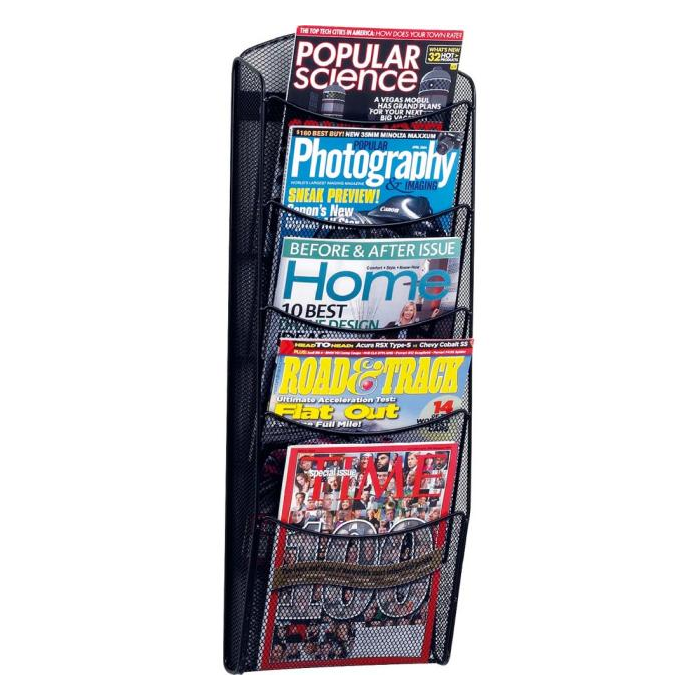 Nástenný prezentačný stojan s 5 priehradkami formátu A4 s hĺbkou 20 mm v modernom neutrálnom dizajne. Pevná a zároveň ľahká konštrukcia, materiál kov s očkami. Ideálny na prezentáciu rôznych dokumentov, cenníkov či katalógov. Dodávaný s montážnymi skrutkami. Farba čierna. Rozmery (š x v x h) 260 x 718 x 95 mm.