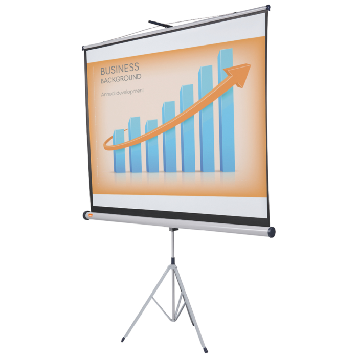 Široká škála veľmi kvalitných, univerzálnych projekčných plátien na trojnohom stojane. Žiarivý matne biely povrch plátna s čiernym okrajom zaručuje ostrý, podrobný obraz, ktorý zreteľne uvidia všetci diváci. Dá sa ľahko zasunúť do puzdra, aby bolo chránené pred poškodením. 2000 × 1310 mm.