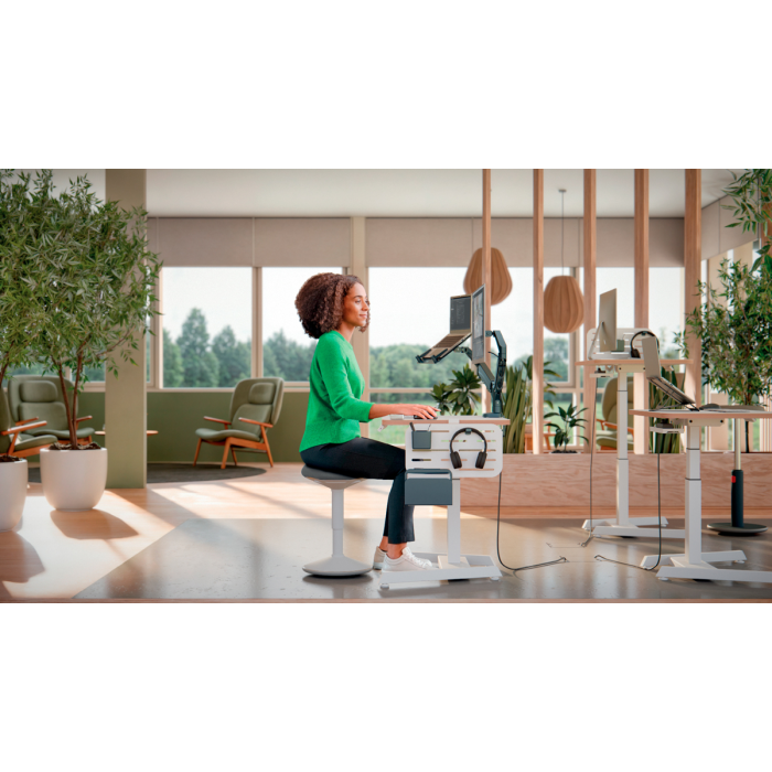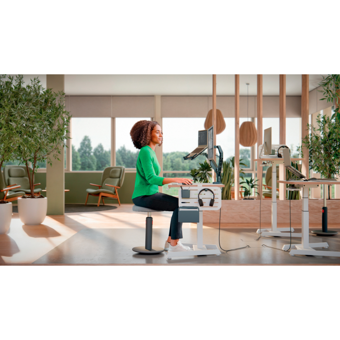 Jednoduchá inštalácia pomocou priloženej odnímateľnej platne Vesa® (75 a 100 mm) a silikónom potiahnutej C-svorky, ktorá znižuje vibrácie a chráni povrch stola, alebo cez otvor pre priechodku (hrúbka dosky stola: 10-80 mm). Vrátane náradia na montáž.