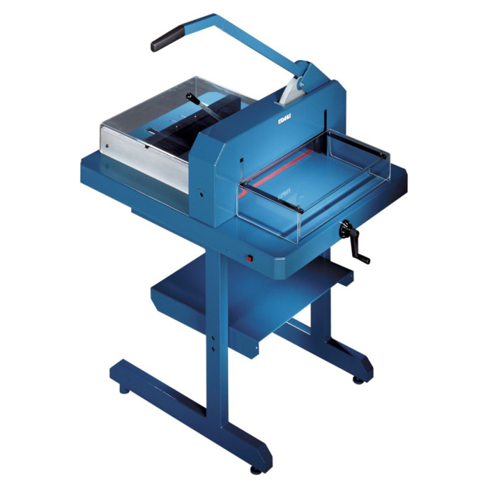 Vysokokalitná vysokovýkonná rezačka veľkej presnosti, rýchlosti a praktickej funkčnosti, vybavená vysokým stupňom bezpečnosti. Robustný kovový stôl poskytuje stabilnú základňu pri rezaní. Robustná rukoväť pre jednoduché rezanie. Brúsená horná čepeľ z kalenej ocele Solingen - prebrúsiteľná. Brúsený vrchný a spodný nôž z kvalitnej nožiarskej ocele Solingen, priehľadný bezpečnostný ochranný kryt, zverák papiera, bočný a zadný doraz, ovládaný kľukou. Rýchlotlačná páka pre efektívne pracovné procesy. Presné stupnice s mm stupnicou pre presný 90° rez. Samoaretačný kovový doraz s vretenom, ktorý vám pomôže rýchlo nájsť správny formát. Minimálny rez 40 mm. Mierka v cm/inch a DIN formátoch. Voliteľné príslušenstvo - praktický stojan s odkladacím priestorom a optimálnou pracovnou výškou 74 cm.