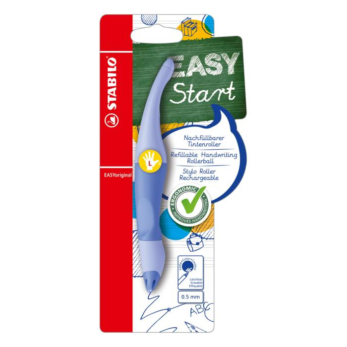 Ergonomicky tvarovaný roller, ktorý píše ako plniace pero. Prevedenie pre ľavákov. Vhodný pre deti, ktoré sa učia písať a školákov od 6 rokov. Uvoľnené držanie pomáha proti únave svalstva ruky a bolestiam pri písaní. Úchyt z nekĺzavého materiálu, nový hrot s každou novou náplňou. Plnený zmizíkovateľným atramentom modrej farby.