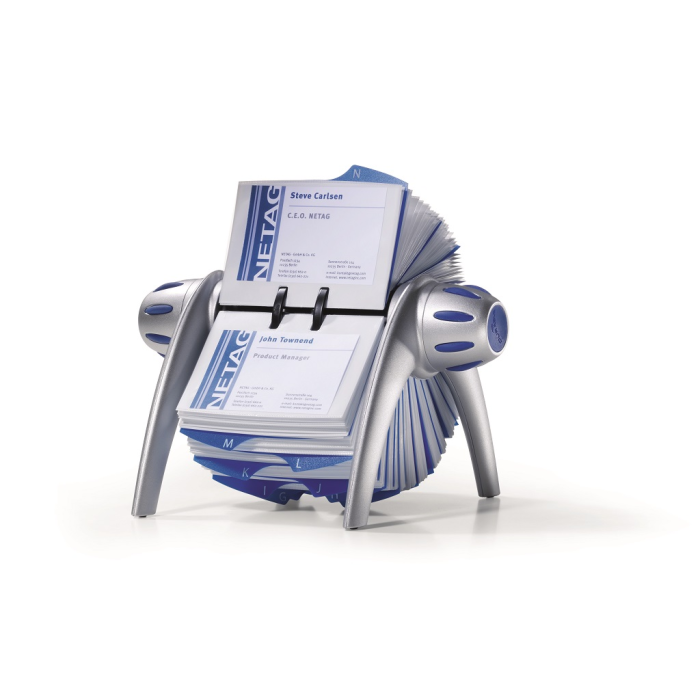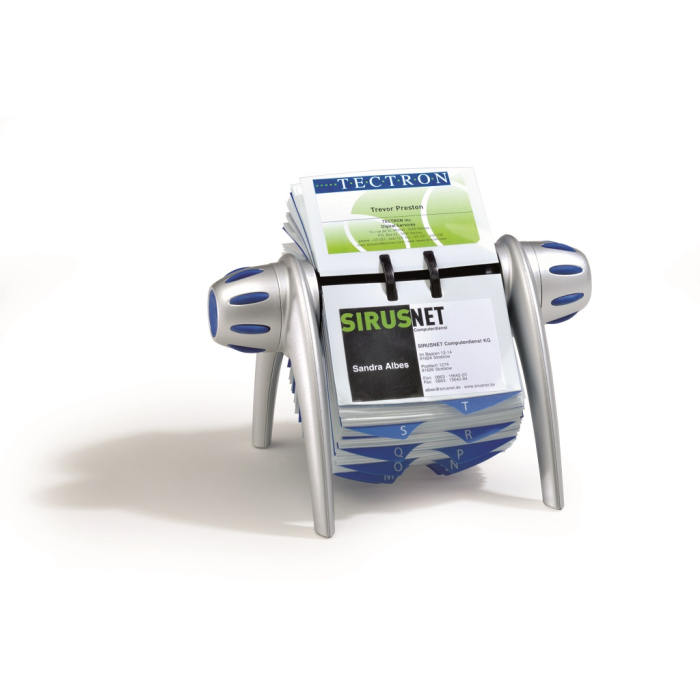 Rotačný stolový vizitkár na 400 vizitiek VISIFIX Flip VEGAS strieborný/modrý