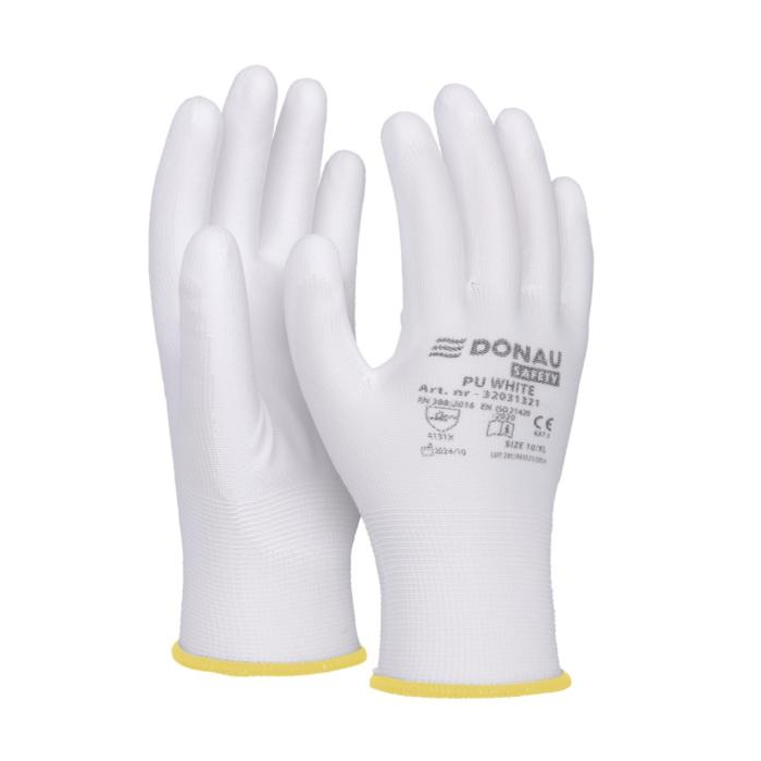 Rukavice pletené, polomáčané DONAU SAFETY PU kat. II biele veľ. 9
