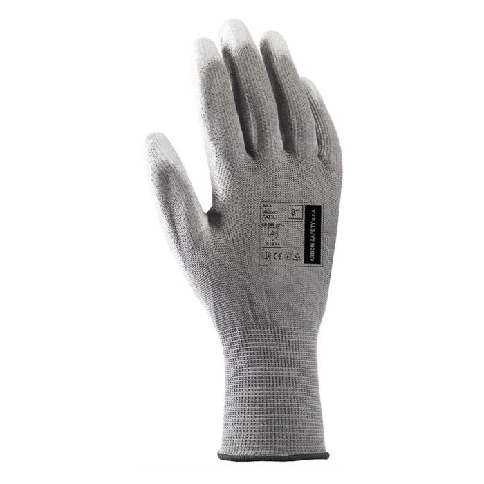 Rukavice polyester, polomáčané BUCK, sivé veľ. 6/XS