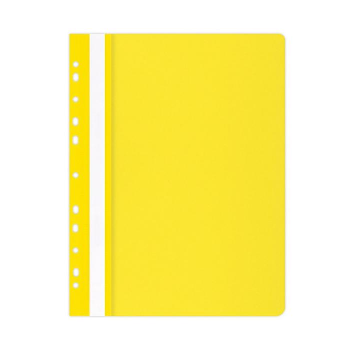 Rýchloviazač PP formátu A4 s priehľadnou prednou stranou a eurodierovaním. Farba matná žltá.