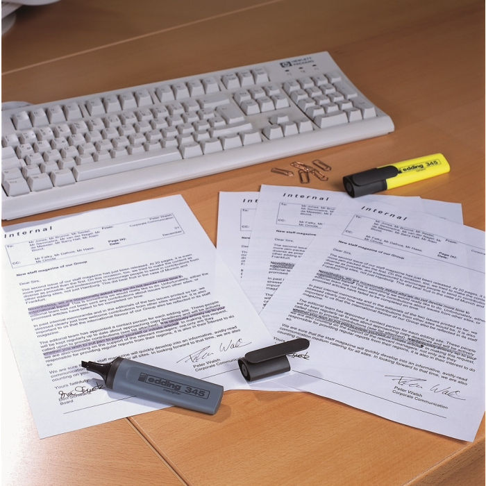 Popisovač so zrezaným hrotom so šírkou stopy 2 - 5 mm. Pre zvýraznenie textových pasáží, výstupov z atramentových tlačiarní, poznámok a pod. Vodovzdorný pigmentový atrament so silne svietivými a intenzívnymi farbami. Vhodný pre InkJet - pri zvýrazňovaní textov tlačených na atramentových tlačiarňach sa atrament nerozpíja. Dopĺňateľný atramentom HTK 25. Sada 6 farieb. Farba: 6 farieb Šírka stopy: 2-5 mm