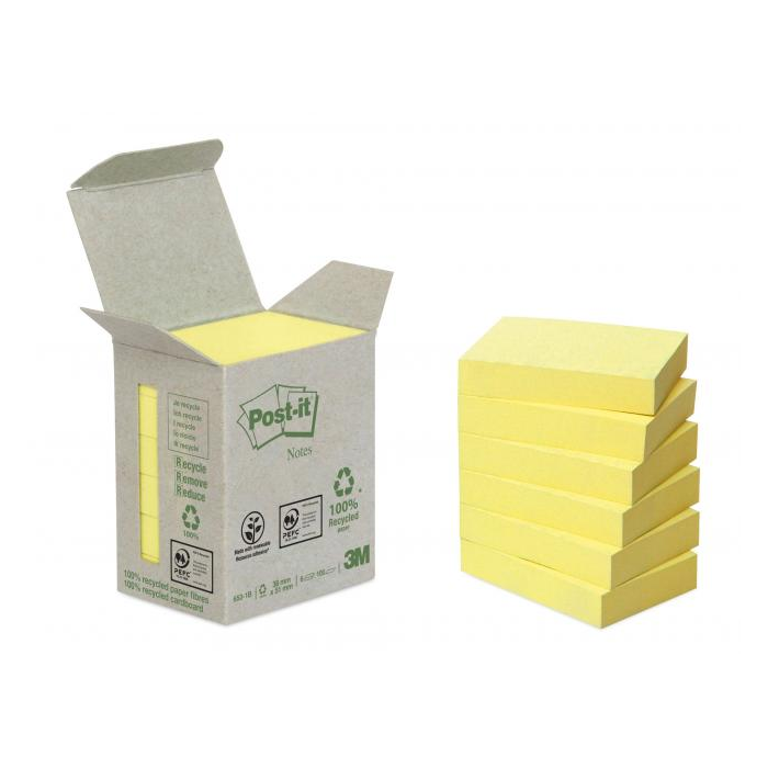 - Vyrábajú sa zo 100 % recyklovaného papiera. - Lepidlo z obnoviteľných zdrojov. - Post-it® bločky sú vyrobené z papierových vláken s certifikáciou PEFC. - Stiahnite si zadarmo aplikáciu Post-it® . - žlté