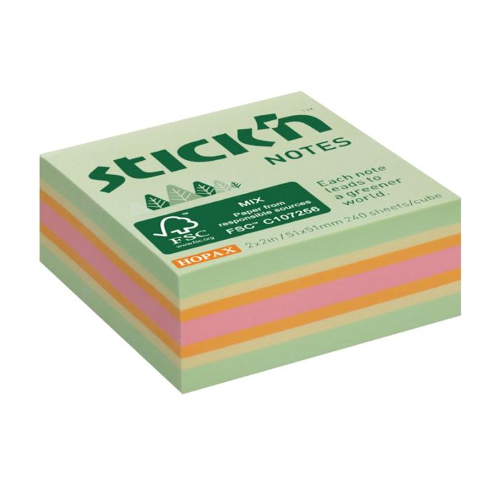 Samolepiaci bloček Stick’n Hopax mini, 51x51 mm, lesný mix pastelových farieb, 240 lístkov