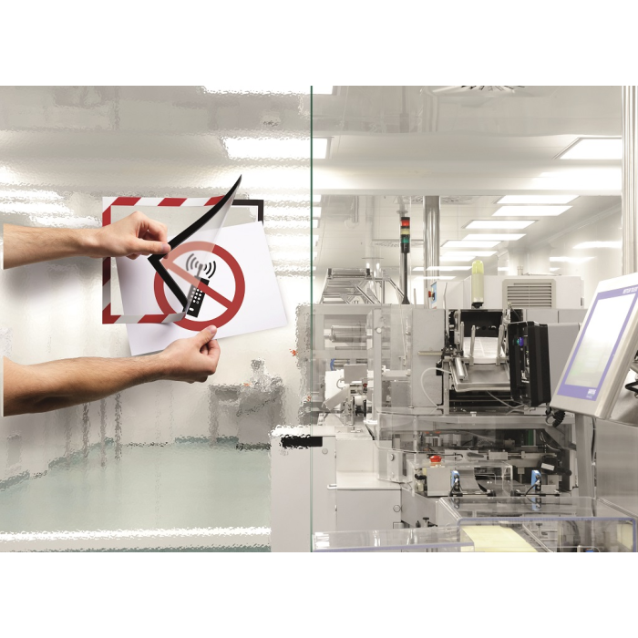 Bezpečnostný samolepiaci informačný panel s prednou magnetickou časťou. Ideálny na vystavovanie veľmi dôležitých informácií. Informácie sú čitateľné z oboch strán. Vhodný na hladké a pevné povrchy. Formát A4. Farba červeno-biela.
