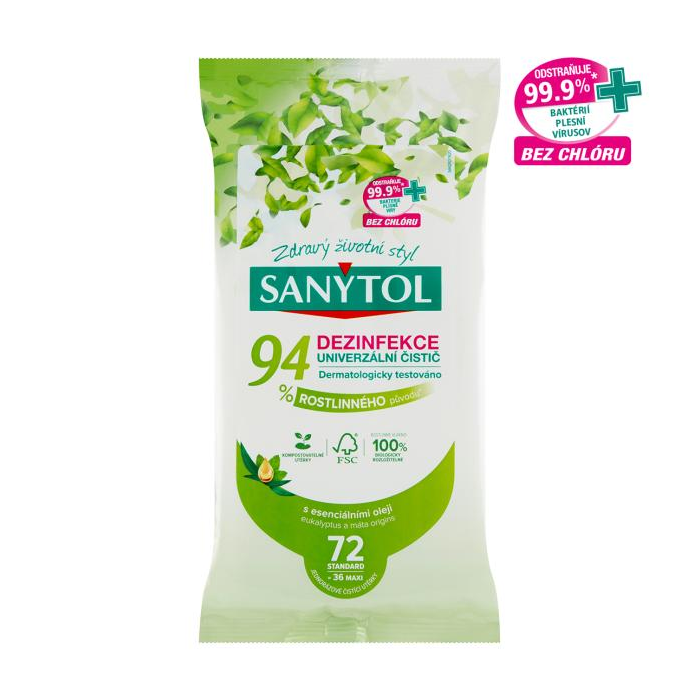 Sanytol čistiace utierky 94 % rastlinného pôvodu 72ks