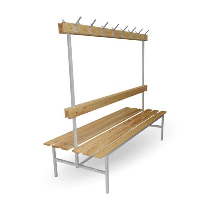Šatníková lavica obojstranná s opierkou a vešiakmi s dĺžkou 1500 mm.