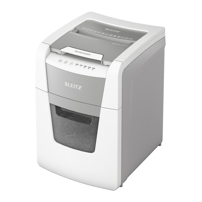Plne automatická skartovačka papiera od firmy Leitz s jedinečnou čistou vyprázdňovacou funkciou. Je tak inteligentný, že ticho pracuje sama, len vložte stoh papiera (vrátane sponiek a svoriek), zatvorte veko a choďte si po svojej práci. Ideálne na použitie v malej kancelárii. Dôverná bezpečnosť a vynikajúci výkon s touto skartovačkou s automatickým podávaním, s funkciou proti zaseknutiu papiera, tichú as dlhou prevádzkou (20 minút). Automaticky skartuje 100 listov A4 s úrovňou zabezpečenia P4 (4x28 mm) s krížovým rezom do veľkého koša s objemom 34 l. Jednoduché ovládanie pomocou dotykových prvkov.