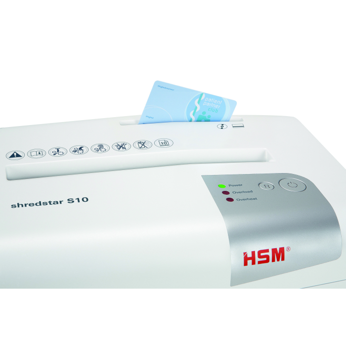 Ochrana údajov pre každého. Táto moderná a kompaktná skartovačka dokumentov s narezanými páskami so samostatnou rezacou jednotkou CD spoľahlivo a potichu zničí vaše dáta doma aj v malej kancelárii. Skartuje CD, DVD, plastové karty a spinky. Rozdrvený materiál sa samostatne separuje. Plný zásobník sa zobrazí na displeji a stroj sa automaticky vypne. Automatický spätný chod eliminuje zasekávanie papiera a zaisťuje plynulú prevádzku. ED indikátor zobrazuje prevádzkový stav zariadenia: napájanie, preťaženie, prehriatie. Integrovaná svetelná závora automaticky spustí zariadenie po vložení papiera do podávača a automaticky sa zastaví po dokončení skartovania. Stav naplnenia odpadovej nádoby je vždy viditeľný cez kontrolné okienko. Veľkosť rezu: 6 mm, kapacita 10 listov. Šírka vstupu 220 mm, objem odpadového koša 18 l. Rozmery 345 x 245 x 385 mm (šxhxv), hmotnosť 3,89 kg.