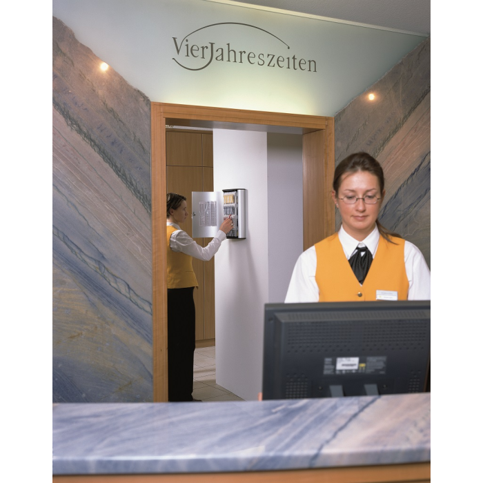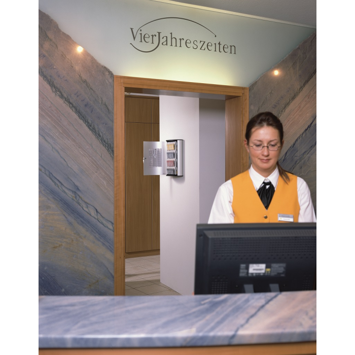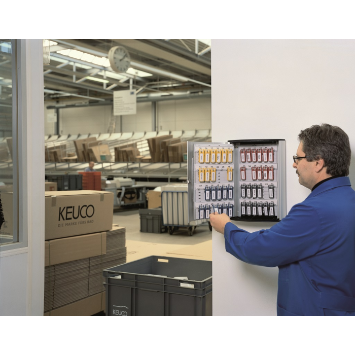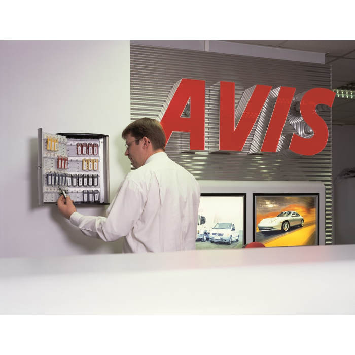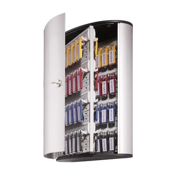 Veľká krinka na 72 kľúčov s dvierkami, otvárajúcimi sa z dôvodu lepšej obsluhy v 180° uhle. Jednoduchá montáž na stenu. Súčasťou balenia je montážna sada, 2 bezpečnostné kľúče a 6 menoviek na kľúče v rôznych farbách. Farba strieborná.