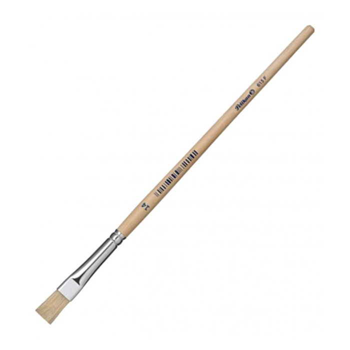 Plochý štetec s krátkymi štetinami. Drevená rukoväť lakovaná bezfarebným lakom a hliníkovým úchytom, s hrúbkou stopy 14 mm. Určený k maľovaniu a kresleniu na papier.