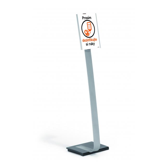 Vysoko kvalitný elegantný hliníkový stojan s informačným panelom formátu A3, použiteľným na výšku alebo na šírku. Zaťaženie stojana a gumové podložky zabezpečujú stabilitu. Protiodrazový panel je možné otočiť vertikálne alebo horizontálne a naklápať v rozmedzí 10 stupňov.Šablóny na potlač sú voľné stiahnuteľné na www.durable.de.
