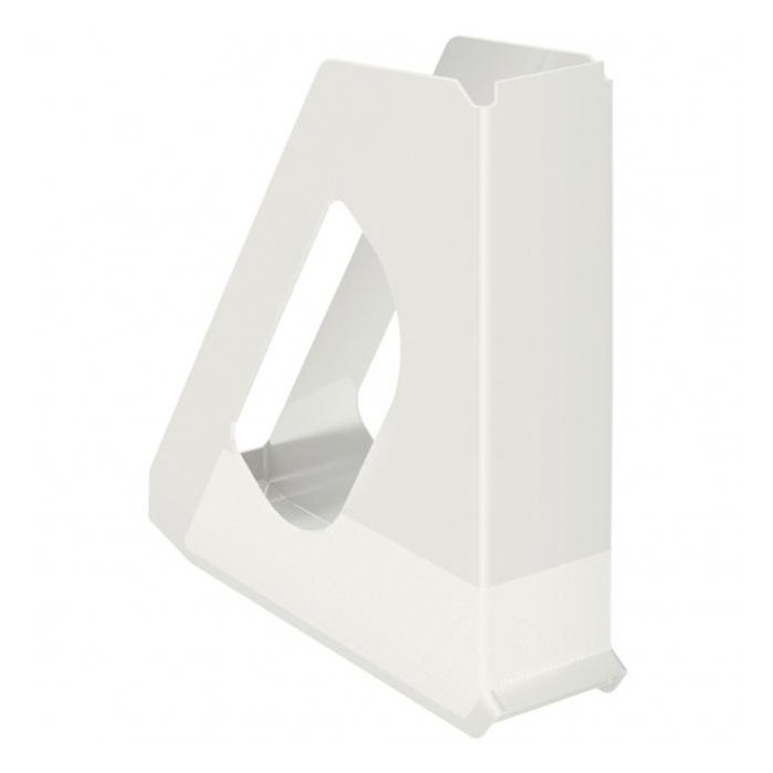 Moderný stojan na časopisy pre uloženie dokumentov formátu A4 na pracovnom stole s unikátnym embosovaným povrchom (štvorčeky) na dne stojana vo sviežich farbách radu Esselte VIVIDA. Znížený chrbát pre jasnú identifikáciu obsahu z prednej strany, integrovaný úchyt pre ľahké vytiahnutie z police. Rozmery (š x v x h) 72 x 256 x 260 mm. Je možné kombinovať ho s ostatnými výrobkami z radu Esselte Europost a VIVIDA pre jednotný vzhľad kancelárie. Farba biela.