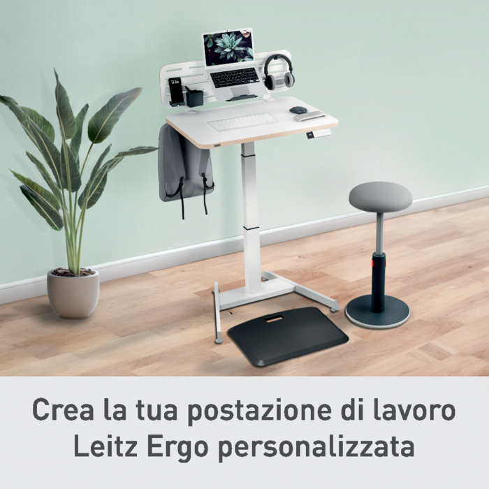 Leitz Ergo Dierovaný stolný organizér s držiakom na notebook nastaví vašu obrazovku do dokonalej ergonomickej výšky a vytvorí cenný priestor na stole