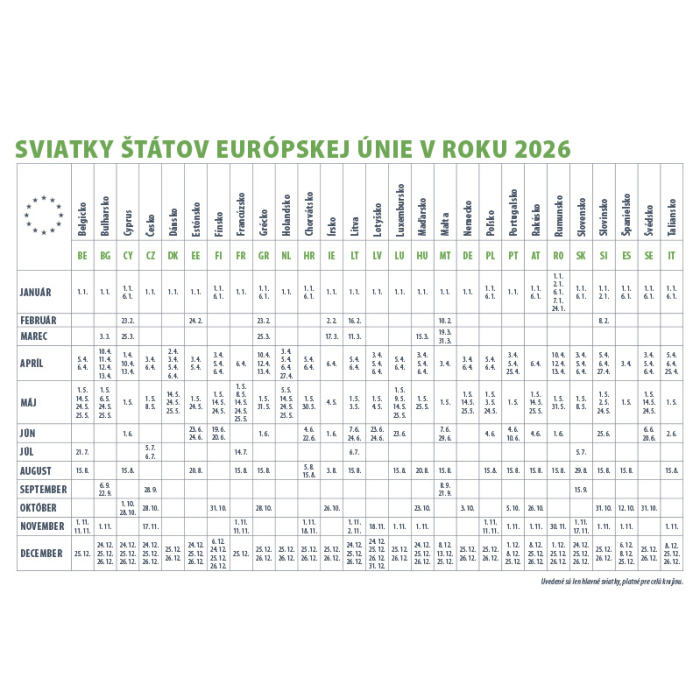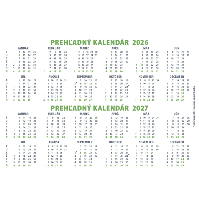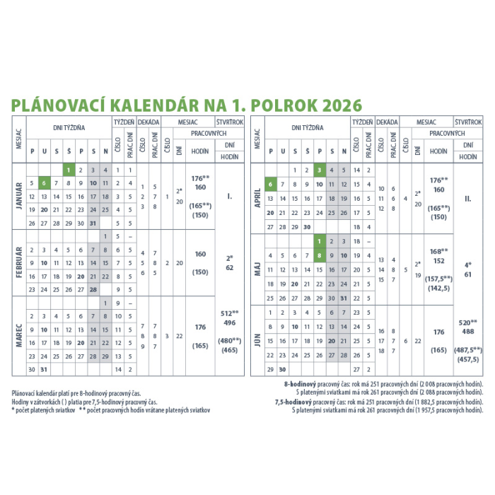 Variant pracovného kalendára s riadkovým kalendáriom. Obsah je identický s veľkým pracovným kalendárom, vrátane daňových pripomienok s prehľadnými mesačnými kalendáriami, fázami Mesiaca, východmi a západmi Slnka, štátnymi sviatkami všetkých krajín EÚ, školskými prázdninami, znameniami zverokruhu, slovenskými a českými menami (plus netradičné mená).
