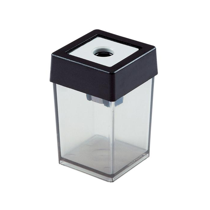 Plastové strúhadlo na ceruzky s boxom na ceruzky priemeru do 8 mm s plastovým viečkom a strúhadlom.