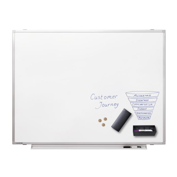 Biela tabuľa s keramickou úpravou povrchu. Odľahčená, ale veľmi pevná a hrubá vnútorná výstuž. Odolný magnetický povrch, vhodný na popisovanie za sucha stierateľnými popisovačmi. Veľmi jednoduché stieranie atramentu aj po dlhšom čase. Kvalitný povrch umožňuje odstrániť atrament aj z nesprávne použitého popisovača (napr. permanentného) bez poškodenia povrchu. Zvlášť vhodná na frekventované a dlhodobé používanie (seminárne miestnosti, učebne a pod.). Hliníkový rám so svetlosivými rohovými spojkami z plastu. Montáž na výšku alebo šírku. Dodávaná s montážnou sadou, odkladacou lištou a popisovačom.