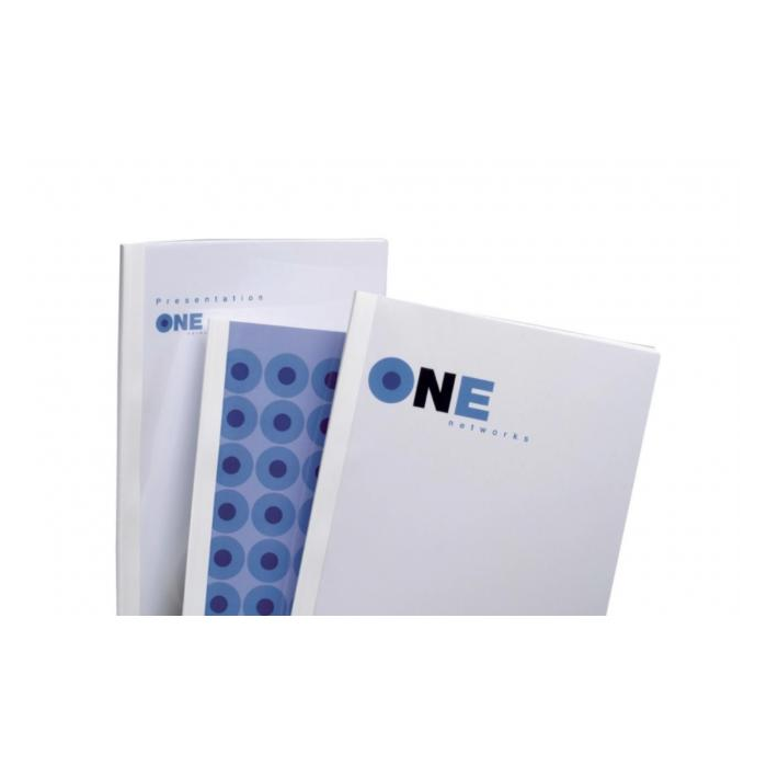 Obálka k zariadeniam na tepelnú väzbu s prednou stranou z priehľadnej polyesterovej fólie a zadnou stranou z bieleho kartónu hrúbky 200 g v saténovej úprave. Kapacita listov 1-8. Farba predná/zadná: číra/biela