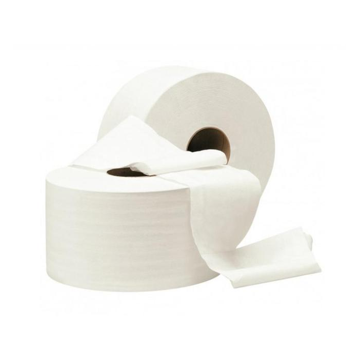 Dvojvrstvový biely toaletný papier vhodný do zásobníkov, napr. Gigant L, obj.kód HY900830. Priemer 26 cm. Návin 220 m. Balenie 6 ks.