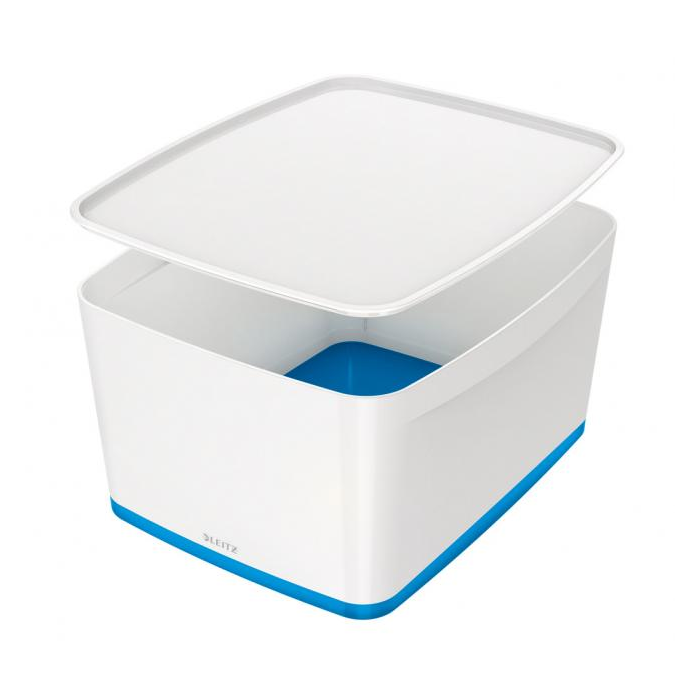 Úložný box s vekom Leitz MyBox, veľkosť L biela/modrá