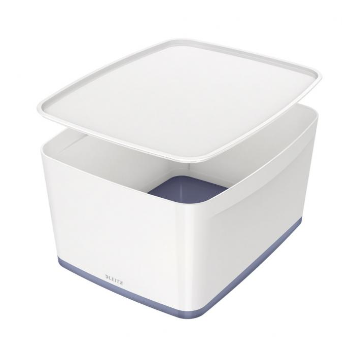 Úložný box s vekom Leitz MyBox, veľkosť L biela/sivá