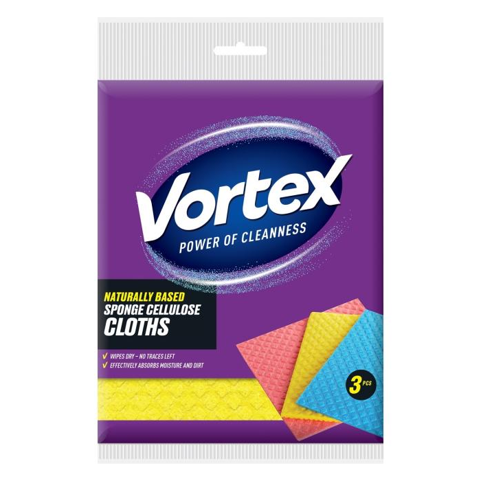Vortex hubové utierky len na mokré čistenie. Extra savé hubové utierky sú vyrobené z prírodného materiálu a sú nealergické. V celulózových utierkach sa nevyvíjajú mikróby a baktérie, nešíria nepríjemný zápach, 18 x 18 cm, 3 ks.