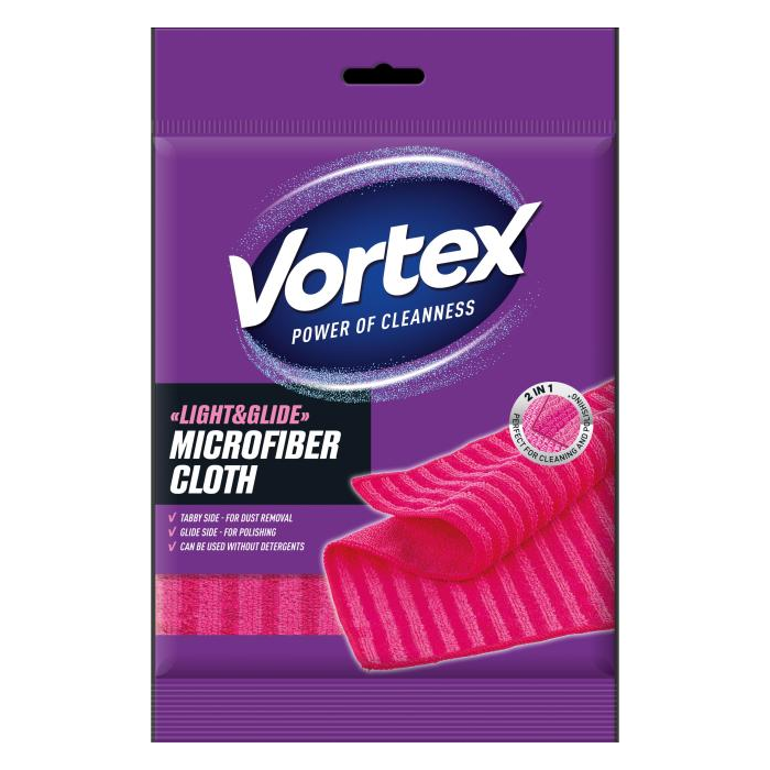 Vortex` utierka z mikrovlákna Light&Glide, vhodná na suché aj mokré čistenie, elektrostatický účinok v suchej forme - priťahuje najmenšie čiastočky prachu. Extrémne tenké mikrovlákna sa dostanú do najmenších mikropórov, 40 x 40 cm, 1 ks.
