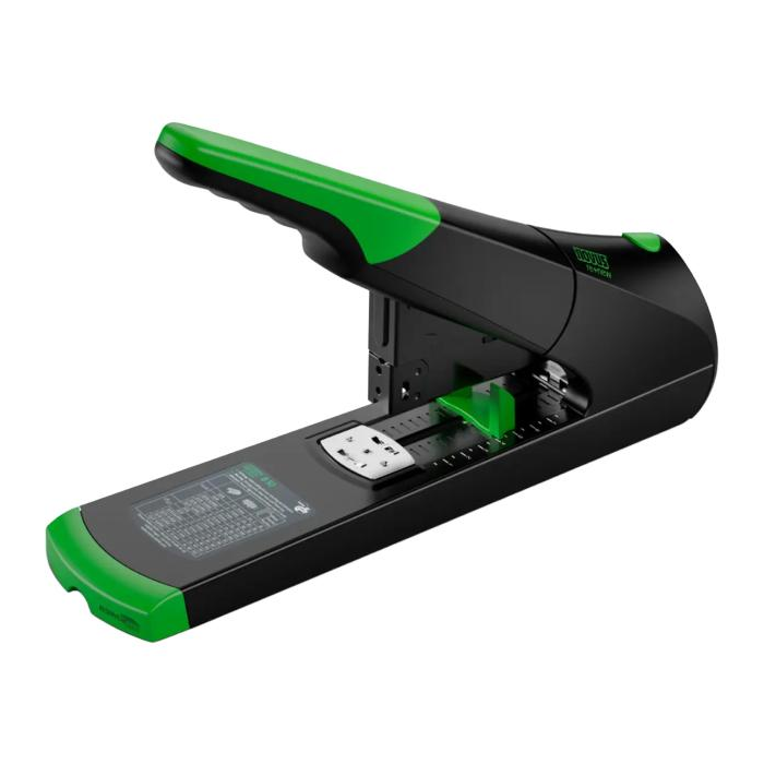 Veľkokapacitná zošívačka pre profesionálne použitie z kolekcie šetrnej k životnému prostrediu re+new. Kapacita súčasne zošitých listov až do 140 listov. Celokovová s plastovým krytom. Systém ABS pre bezproblémové zošívanie bez zaseknutia spiniek. vrchná časť je z 81% recyklovaného plastu. Kapacita náplne 100 spiniek 23/6 až 23/17 Super. Hĺbka zošívania 7,5 cm. Hmotnosť 1460 g. Záruka 25 rokov. Farba čierna.