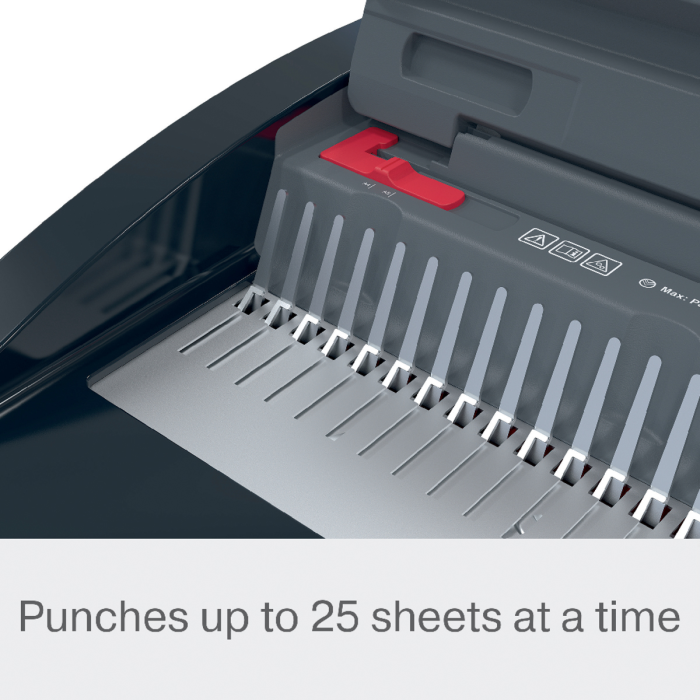 • zjednodušuje proces väzby - bez námahy prederaví až 25 listov papiera s gramážou 80 g/m² formátu A5/A4 naraz