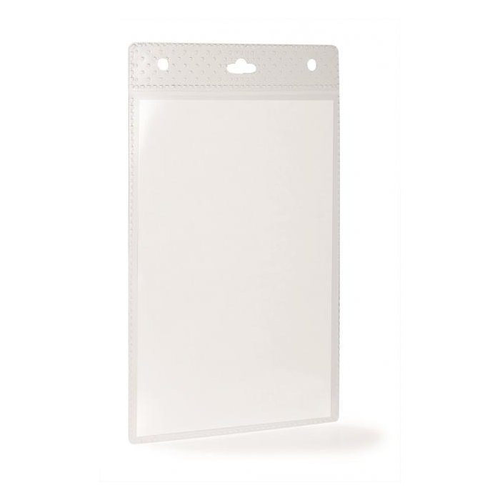 Visačka bez remienka Visačka z PP s perforáciou na uchytenie. Ideálna na vybavenie väčšieho počtu osôb na konferenciách, výstavách a pod. Dodávaná spolu s etiketou formátu A6. Použiteľná s textilným remienkom, výsuvným kotúčom alebo retiazkou. Balenie 20 kusov. Vnútorný rozmer: š105xv148mm