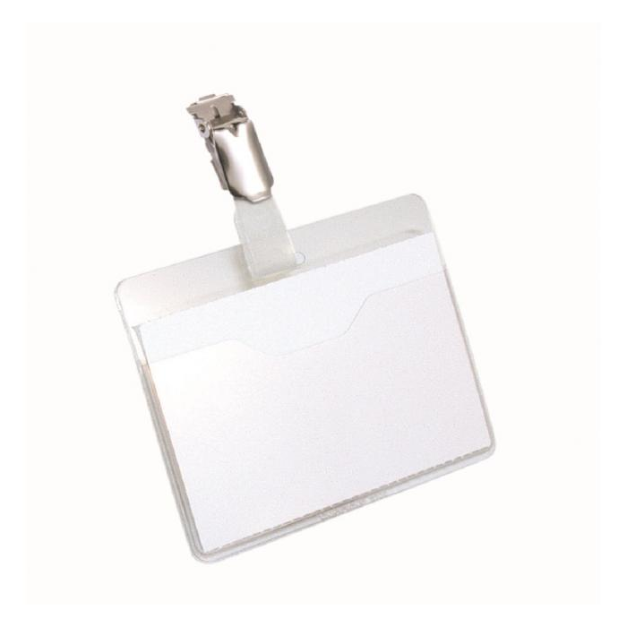 Priehľadná visačka s európskym štipcom, umiestneným na dlhšej strane visačky. Dodávané s papierovými kartičkami rozmerov 90 × 60 mm. Model, pri ktorom možno menovku vyberať bez potreby odnímania štipca s remienkom. Farba transparentná. Balenie 5 ks.