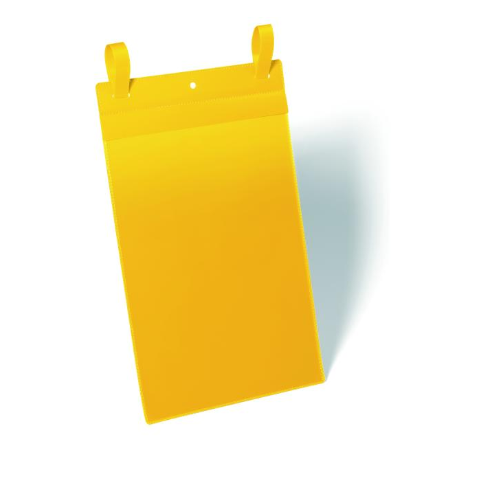 Plastové vrecká s priehľadnou prednou stranou a s 2 upínacími prúžkami s ochranou proti rozpojeniu sú vhodné na kovové povrchy, napr. sieťované kontajnery, rúry a prepravné kontajnery. Použiteľné aj v exteriéri vďaka ochrannej klope, chrániacej dokumenty proti dažďu, prachu a vlhku. Farba žltá. Formát A4 na výšku. Balenie 50 ks.