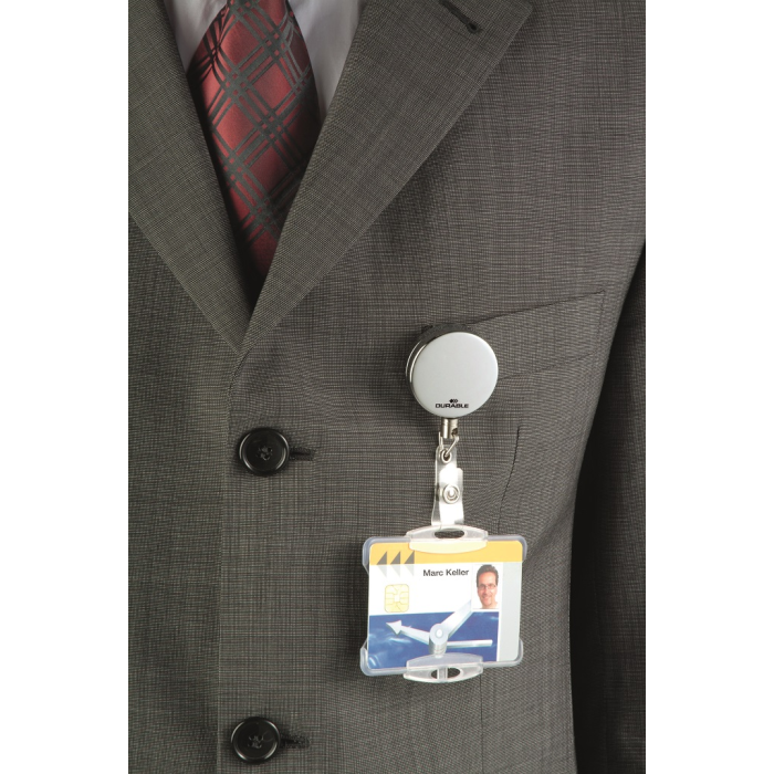 Vysúvací kotúč s možnosťou vysunutia do 80 cm. Vhodný na uchytenie všetkých visačiek značky DURABLE s perforáciou. Priemer kotúča 40 mm. Balenie 10 ks. Farba: strieborná