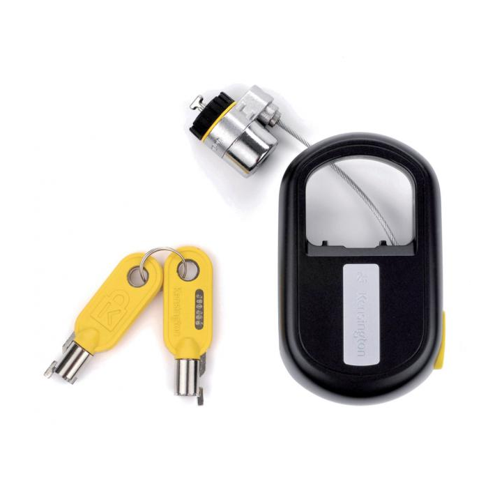 Zámok na mobilnú ochranu citlivých dát v notebooku je vybavený uzamykateľným mechanizmom T-bar™ a výsuvným ceľovým káblom, ktorý sa dá pripojiť k štandardnému slotu Kensington Security Slot™. Kábel je odolný voči prerezaniu a v taške zaberá málo miesta.
